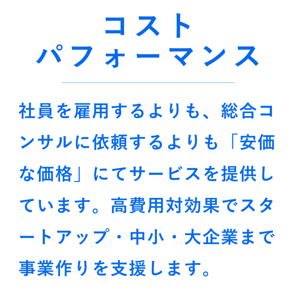 イフビズは戦略と実行の両輪を持ち、加えて自社でもビジネスを作っているため、総合力の高い提案が可能です。そして、採用するよりも、総合コンサル会社よりも安価にサービスを提供しています。